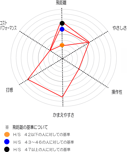 低反発のドライバーの中では秀逸な飛距離性能。ただしボールの低い人やスピン量が少なめのプレイヤーには不向き。どちらにしてもある程度ヘッドスピードが出る人でなければ使いこなせない。 |